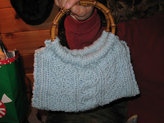 I made this for my sister, Rachel, and its Lion Brand Yarn's pattern called Bee-Bopper Purse. It was loom knitted with thick and quick also.